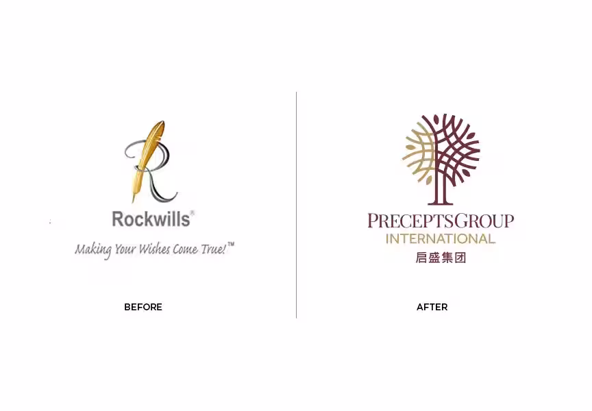The new PreceptsGroup identity and visual system shown here drew inspiration from the Tembusu tree as a symbol of Asian strength and longevity.